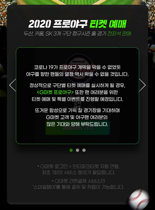 지마켓에서 2020 프로야구 티켓예매를 진행하게되면서,